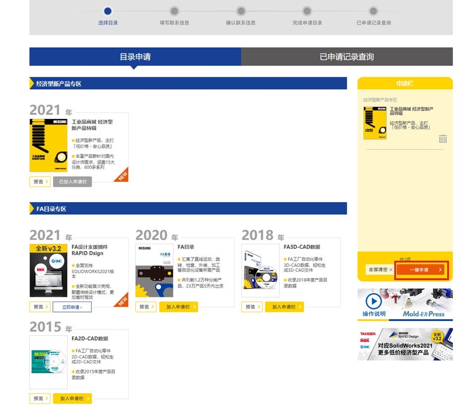 - 如何申请产品目录
