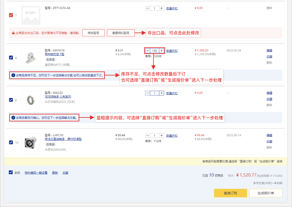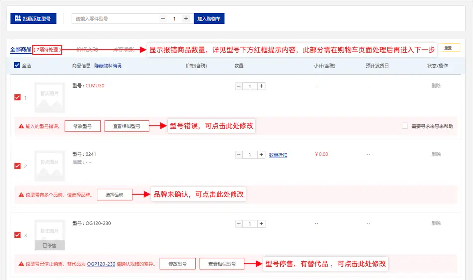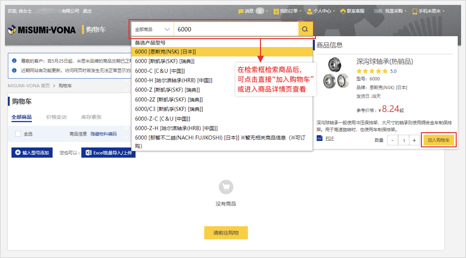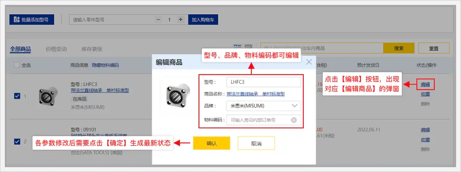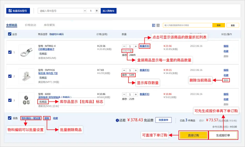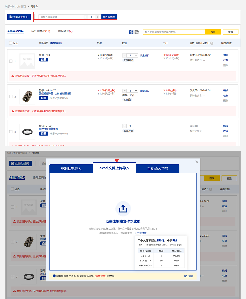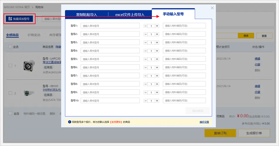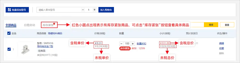 ※图例中所显示的价格信息均为样例,实际商品价格请在米思米网站上再次确认