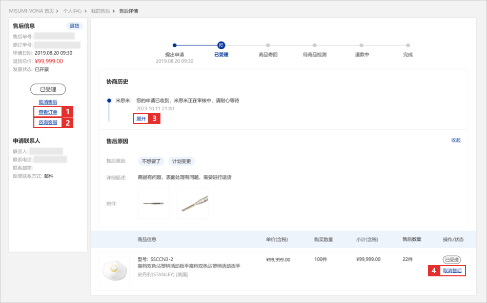 04: 点击【取消售后】可取消当前退货申请
