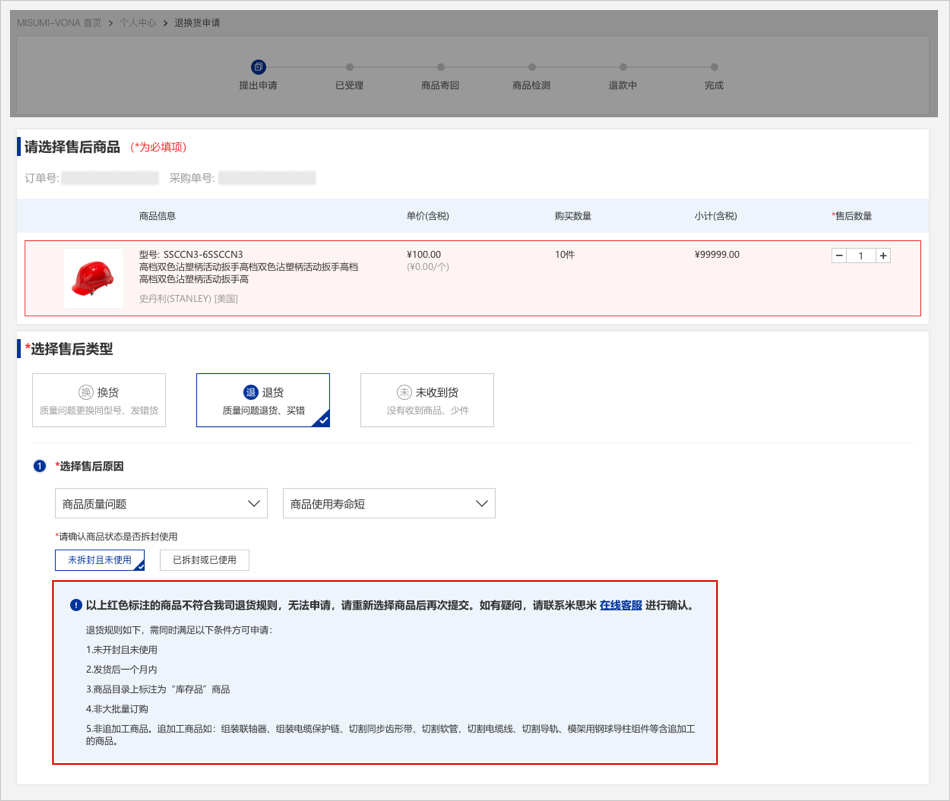 无法申请退货的原因