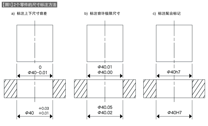 | 1. | 公称尺寸附带上下尺寸容差进行标注的方法(参阅【图1】-a)。 | |