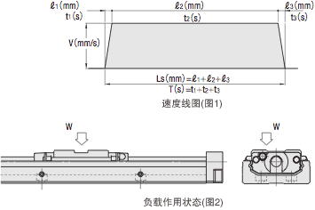 在加速度833mm/s2及最高速度250mm/s时使用移动距离200mm。若使用LX26系列,