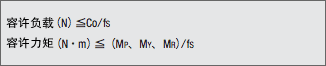静止时或低速运动时所承受的基本静态额定负载Co根据使用条件,除以表-1所示的静态安全系数fs后使用。