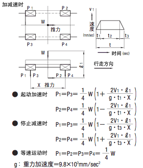 作用于线性系统上的负载通常会因其使用方法而有各种不同的变化。例如,在往复运动的起动、停止与匀速运动时,还要考虑传送时有无工件等因素。对于这种变动的负载,必须求出与该条件下相同寿命的等效负载,进行寿命计算。