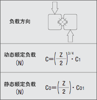 额定寿命可根据基本动态额定负载与施加在直线导轨上的负载按下列公式求出。